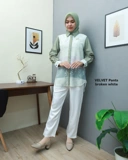 Celana dari bahan satin velvet ini cocok banget untuk jadi bawahan koleksi outift atasan lebaran kamu