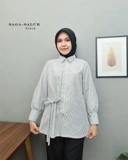 Rekomendasi kemeja basic stripes " SAGA " dengan detail tali di bagian samping nya