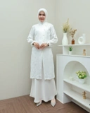 Cuttingan Panjang menutup, dan detail bordir yg ekslusif di padukan dengan celana atau skirt putih